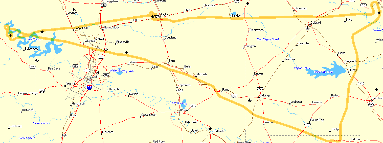 Holy smokes! I'm a pilot! Yep, I finally did the solo cross country. I flew down to the Industry VOR (South) and then headed over to 88R) Spicewood, which is a little 30' wide strip on Lake Travis on the west side of Austin. It was great! I landed there, tanked up and got a fellow in the hangar to sign my logbook with his aircraft identifier to prove I went there. I didn't delay too long and took off to my next leg stop, T74) Taylor. Landed and got someone else to sign my logbook. What a blast - this is great. I had no problems finding things and navigating. I can't wait to do it again. Now, I have a total of 36.9 total hours after getting 1.8 for the Spicewood leg and 1.5 for the Taylor then CLL leg.