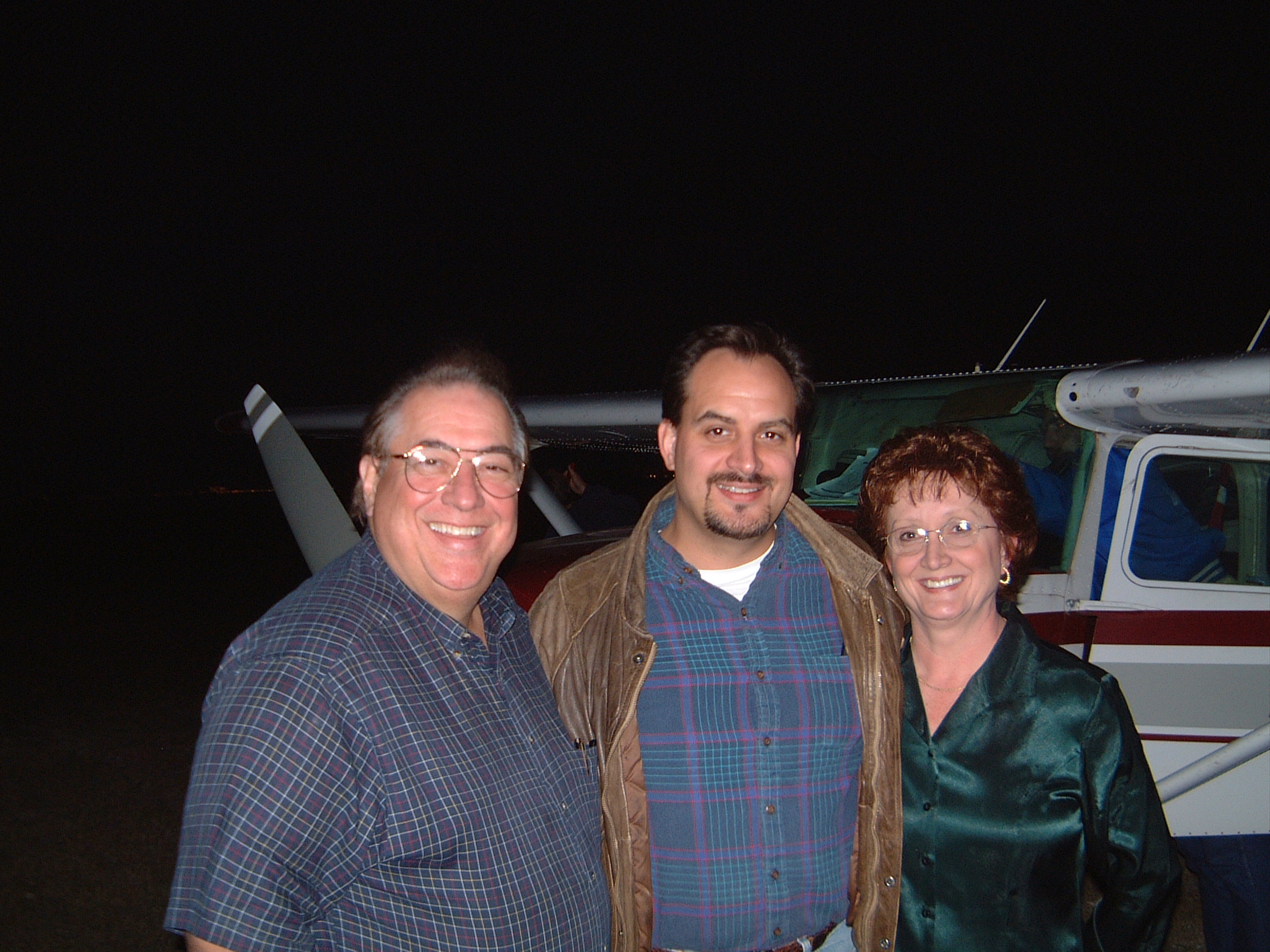As we went over Victoria, I noticed that the cloud cover is at about 3000 ft and it is thick. Andy got us Flight Following from Corpus Control and they directed us straight to Hunt Airfield. After one go-around, I landed on the 20' wide strip and saw Dad waiting in the car for us. Time to eat! We headed back to the plane and its got dark. Really dark. There were no lights at Hunt, so we hurried up and got airborne. I said good bye to my family and best of friends, Dustin Tauferner, who saw me off along with his wonderful family. The flight to Lake Jackson was perfect - JohnW had the plane perfectly.